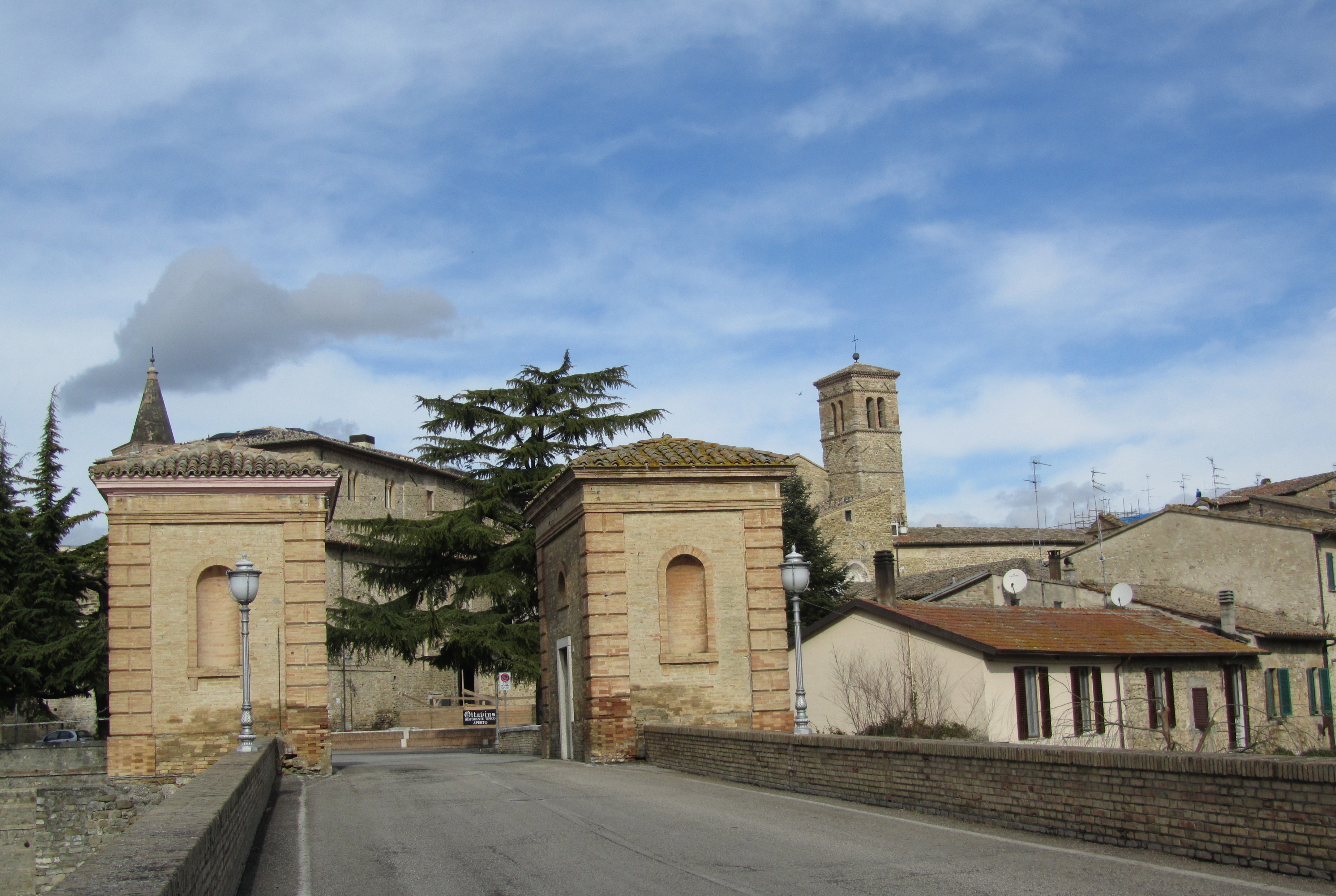 Photos are: Montefalco from the road, the entry gate and the area.