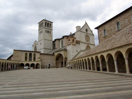 The photos are of the Basillica, the floating father( loved getting this shot of him floating down the stairs) and the farmland that separates the old and new Assisi.