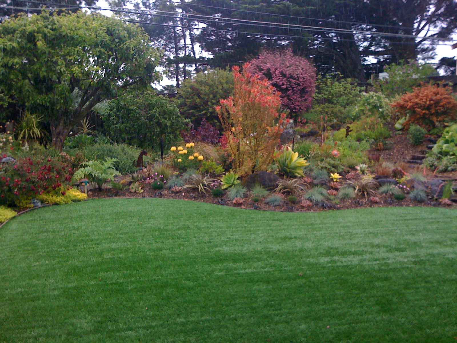 There is a special garden in San Bruno and it is due to the hard work and constant diligence of Cousin K. Even though it was raining, we were able to enjoy its beauty knowing that it grows more beautiful as the season progresses. Cousin L & K have a close relationship with Flora Grubb Gardens in San Francisco, a must visit when in the South San Francisco area. Many of the unique, exotic plants in K’s garden come from Flora’s. Take a look.