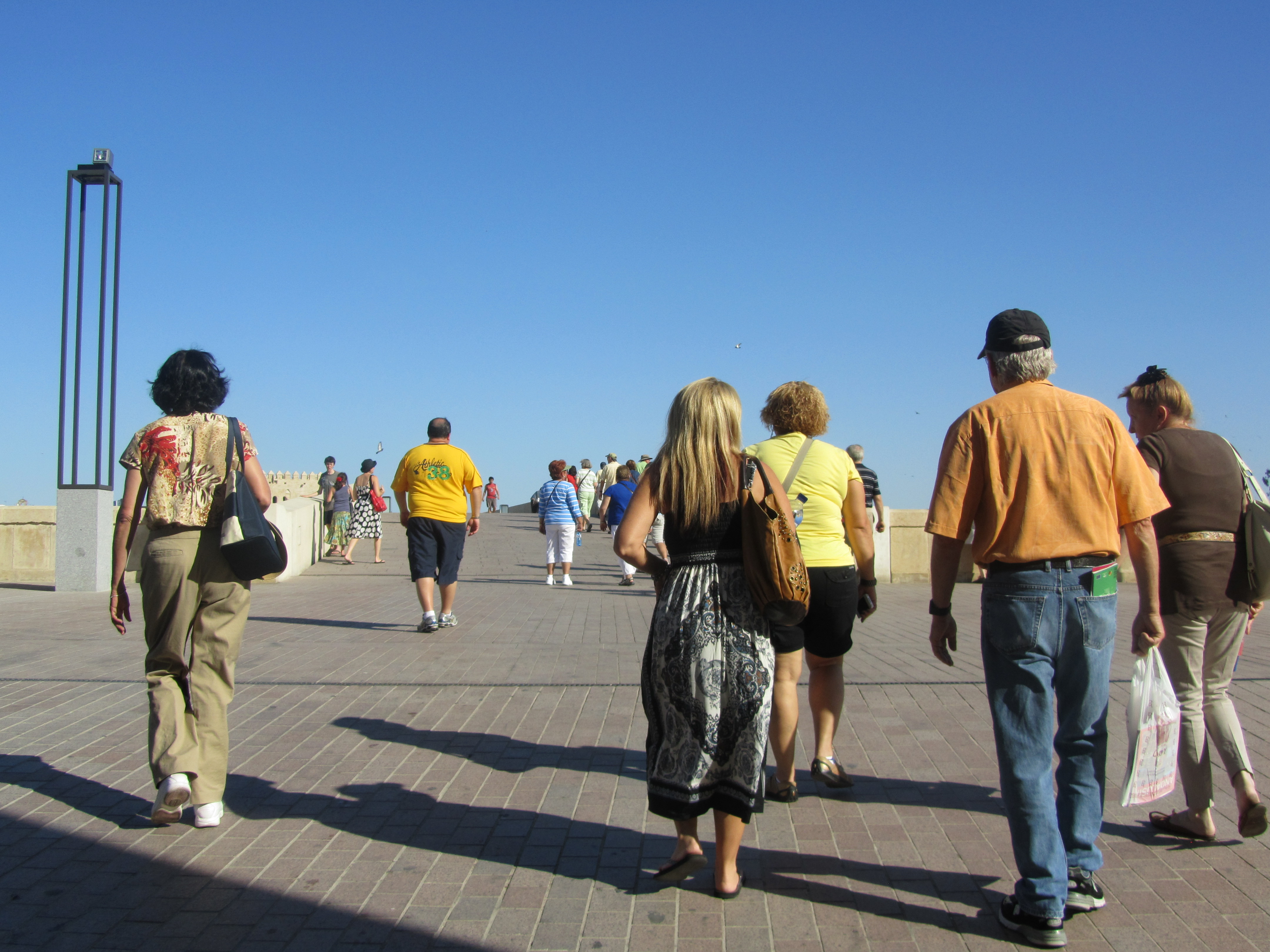 There is a beautiful bridge leaving the historical area of Cordoba and after a long and exhaustingly hot tour of this area, we were to walk the bridge to meet our bus on the other side. Albeit my face was red and sweat was running down the back of my neck, but other than that, I was on the move towards the bridge. My family was worried that I was too tired to do the bridge. I do not know what the heck they said to the guide, but she asked if she should order a taxi for me. What the… are they kidding? I said, “Why?” She said, “I don’t know.” Skip said, “Well because you are so slow.” Pissed was I, and said, “Turtles win races and off I started out over the bridge. I was second over that sucker and learned a very important lesson. When you do win or are over before everyone else there is no one there to cheer you. Really. Also, you rushed through the experience of walking over a bridge and have only being over it to remember. Turtles win races in fairytales and in real life; I have been the turtle and I have been the winner. Yes!!!!!