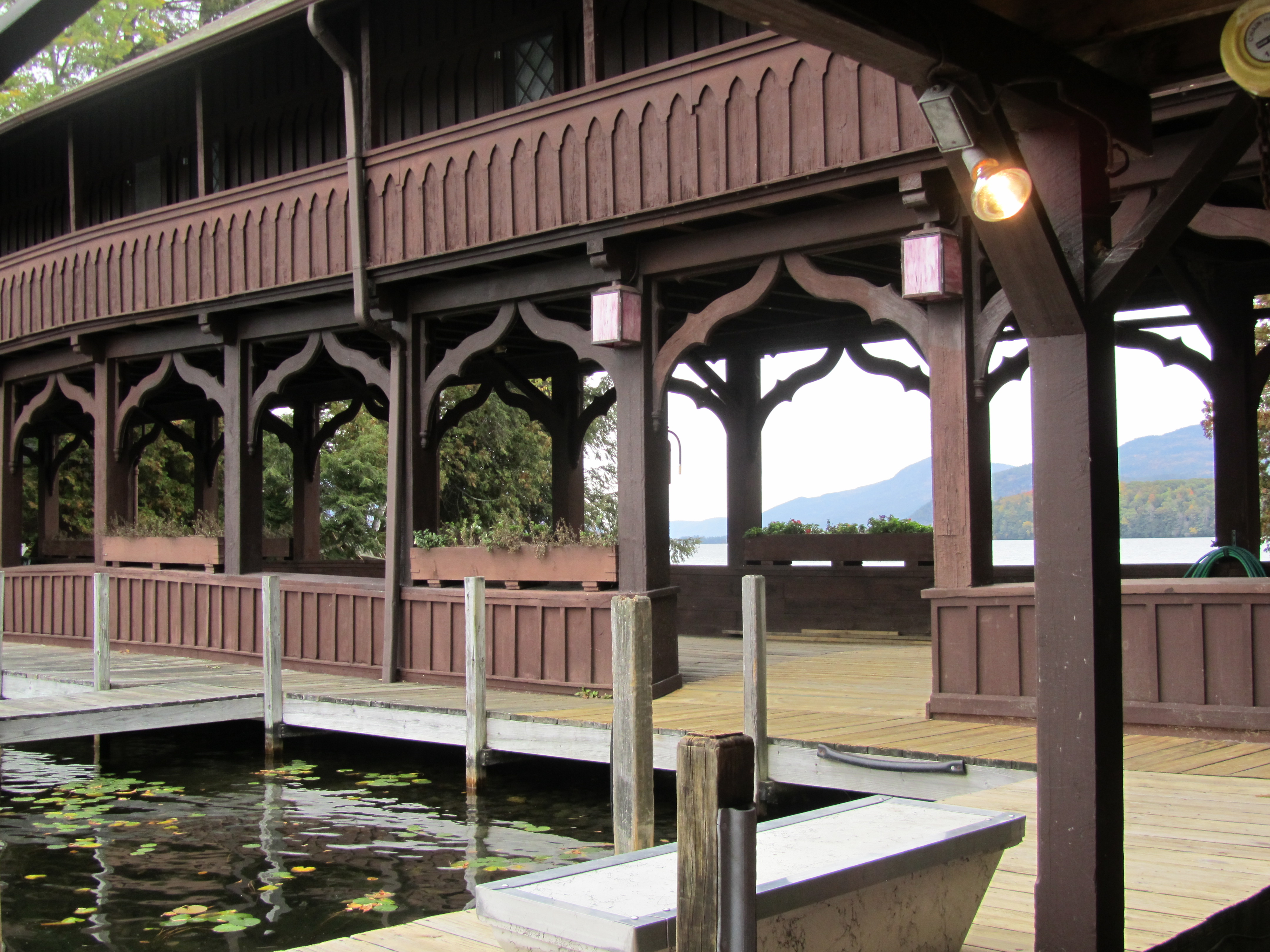 At noon, we picked up a picnic lunch before our boat ride in and around the 35-mile long Lake George finding ourselves guests of P & D at their compound consisting of three small islands connected by Gothic looking bridges. It was thrilling to be escorted and to visit this lovely spot in the middle of the lake. If you are a blood relative you were welcome to build a home and live on the islands, but now that most of the building is done, you have to buy what is there now from a relative. The summer finds many of the Sir clan living and visiting this lovely idyllic paradise at the water’s edge. During the winter months you have only P & D living year round. I asked P how they get to the mainland when the lake is frozen solid and she said they have a Norwegian Sleigh, they have a canoe they use and paddle it along the ice to get over the solid lake; they skate and have their private secrets on getting to and getting what they need during the months of living on the frozen winter water. She said that they close off a good part of the house and live in a small portion of it during the freeze. As we boated our way to the mainland, I turned and saw the beautiful trio of islands and bridges receding and realized that we were very privileged guests and I thank P & D for their generous hospitality, the generous gift of imparting their knowledge and sharing their fortunate life with us for the afternoon. Thank you P & D.