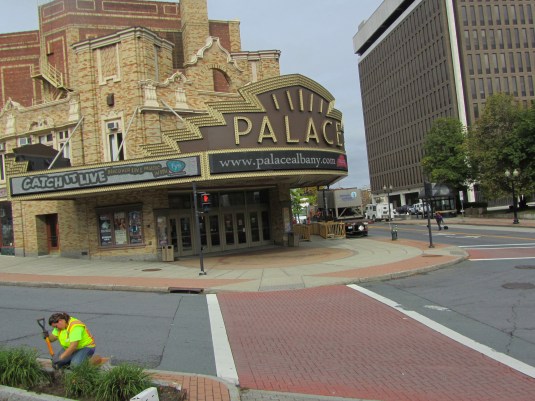 Sleep 3 Today we rode an amphibian (Hydra-Terra vehicle) tour bus/boat to experience and delight ourselves with the sights of New York’s capital city of Albany. Not only is it New York’s capital city but also, it is the city of Skip’s birth. Even though Skip is a historic sight himself, we took the tour with experienced guides to enlighten us about the other historic sites of this 402-year-old city. We passed by the Albany City Hall, the Ten Broeck Mansion, Washington Park, New York State Museum, the Palace, which was the flagship theater of RKO, many years ago and the D & H (Delaware and Hudson) railroad building.
