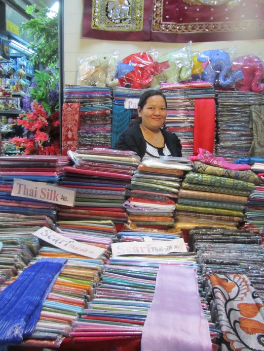 How many of you do well in high degrees of heat and equal amounts of humidity?  Raise your hands.  Traveling in weather conditions other than perfect is hard, harder still when the distances you have to travel in these conditions are far, far away.  We are docked at the pier, which is a distance from Bangkok proper, which is of course not ideal. We had to travel nearly an hour by shuttle to go to the entrance to a large lovely mall, only to take a taxi to our chosen destination. Our chosen direction is the big weekend market way across town. It is so large that it can take all day to see everything. We enjoyed much of the market until the heat and the exhaustion took over. I am happy to share some photos of the nicest people on earth. Thai people have been so friendly, helpful and kind. Every time I asked to take a picture, everyone responded with a yes and posed.  They were happy to share themselves with the camera and with me.