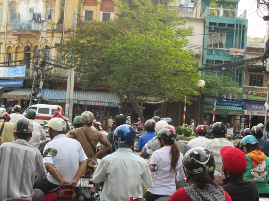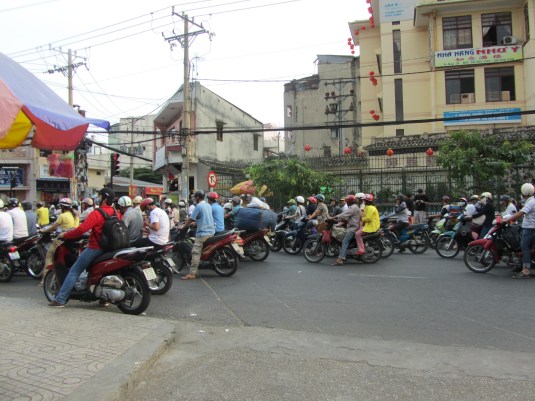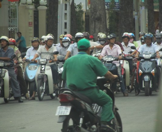 The city of Saigon has its true exotic, eclectic wondrous sights full of motorcycles, mopeds and bicycles of all nature motorized and foot and leg powered. People, people and more people are everywhere. I don’t know how our driver did it, but he did a great job from morning until night two days in a row. Eight million people in Saigon have five million mopeds. Don’t even think of crossing the street. Just being surrounded on all sides, front and back by two wheeled vehicles crisscrossing your space and crowding you is like a theme park ride that does not end until you have come to your destination.