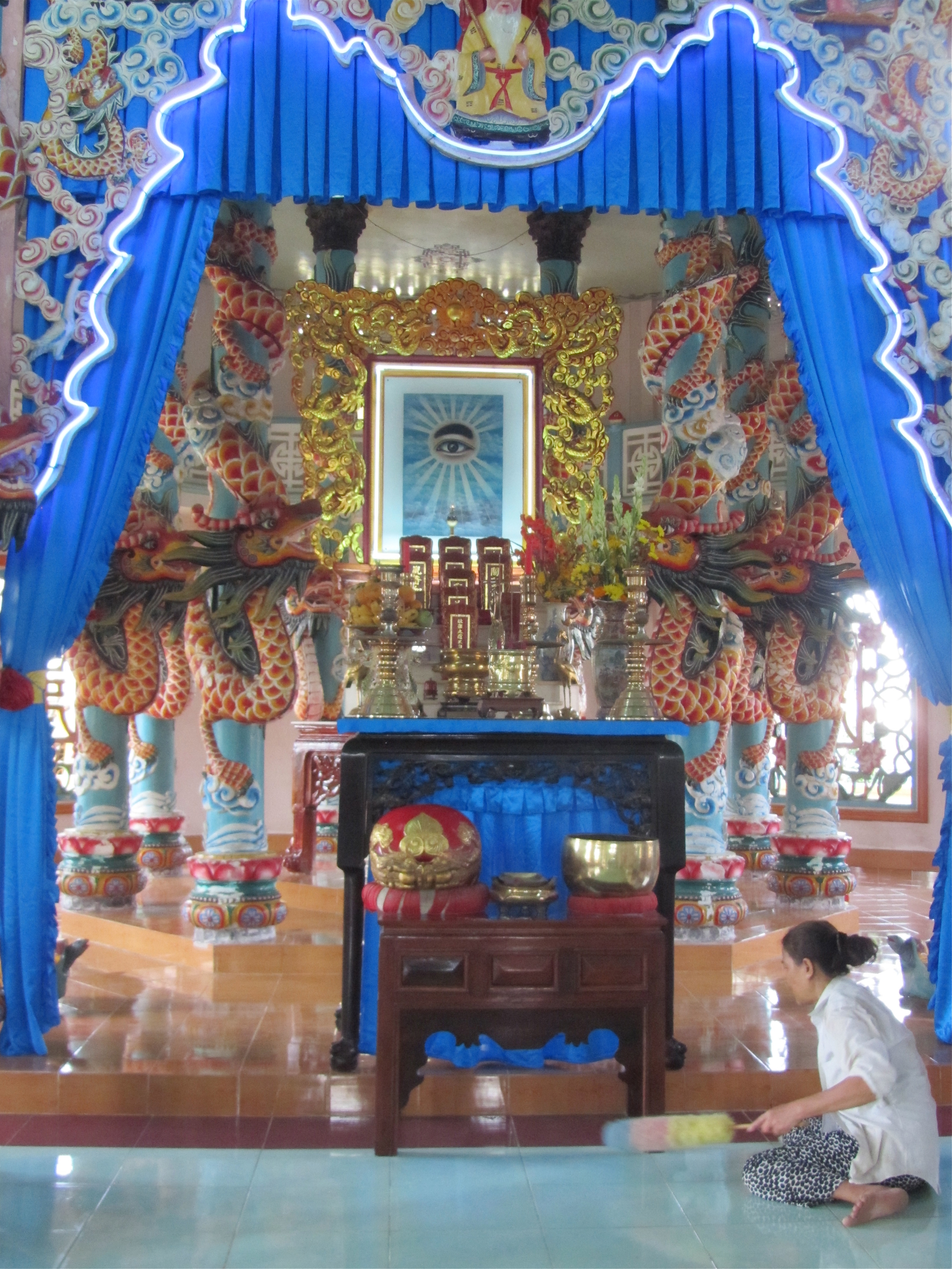 We started very early this morning for a drive to the city of Cai Be and visited a lovely multi-denominational temple/church. (Buddhism, Confucianism, Hinduism, Catholicism, Christianity, and Muslim. Somehow the mixing of faiths gives this temple a special glow.