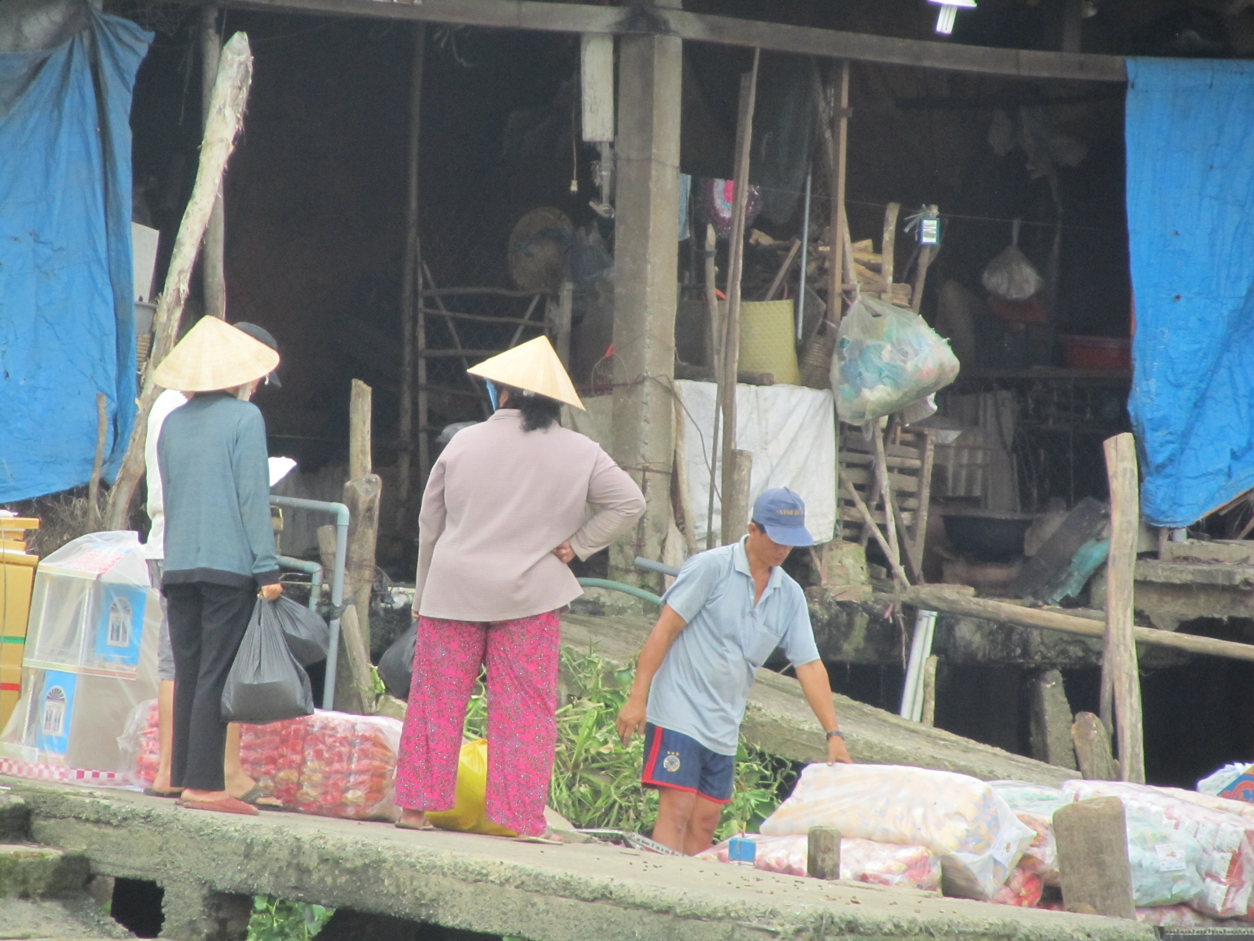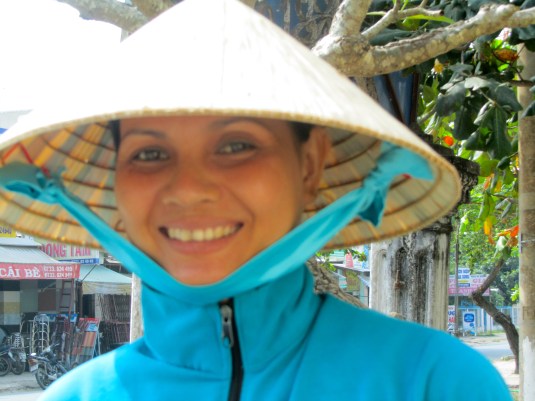 I briefly encountered these three women in the city of Cai Be. I was fascinated with their traditional cone hats and their beauty.