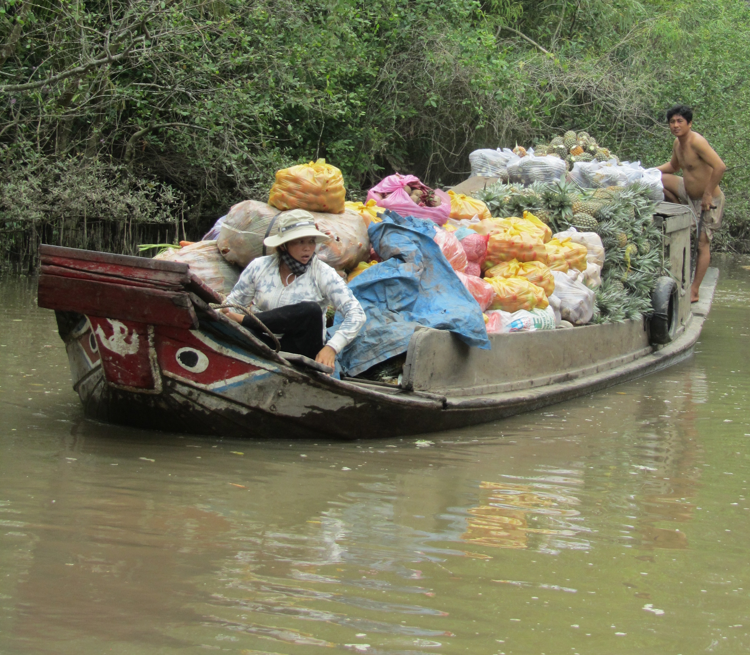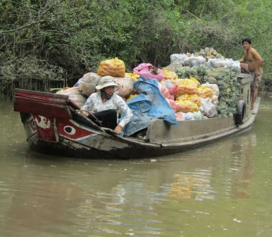 The heart of the day was spent cruising along in our own private Sampan on The Mekong River among the local sampans coming from all provinces to a floating market with fruits and vegetables from all over the delta region. Included are some of my favorite scenes from the river and some people we briefly met in the region.