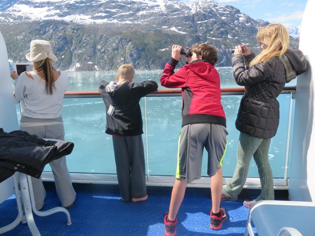 We spent the day cruising Glacier Bay in Alaska. The sights along the way had cruisers glued to the passing scene. The story will be best told through photos. Missing from the photos are our humpback whale sightings with waving tails, bald eagle fly byes, and a few otters. Manuel saw through his binoculars, a big brown bear across the bay.