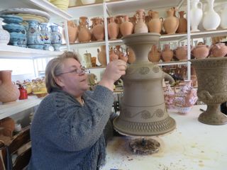 Our next adventure was visiting a pottery factory. Our driver just drove right by it and I asked about turning around and going back. He was pleased we asked and the turn around was well worth our time. We were invited into the back of the factory where a worker was beautifully etching a bell. Towards the end of the day in the city center we were able to see our pottery factory’s pottery for sale.