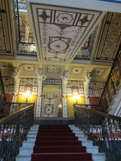 Again, we were lucky because it had rained hard in the early morning hours, but for our tour it was only the ground that was still wet. We had to be careful. Our first stop after you enjoy a coastline drive, passing six small cove beaches, is the Museum and Palace of Achillion. This beautiful building and grounds is of Pompeian style and was built by the Empress of Austria and Queen of Hungary Elizabeth, called Sissy. She gave the name Achillion to honor Homer’s hero Achilles. You know of Achilles tendon fame.