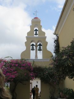 We were to have a leisurely drive through Paleokastritsa village on our way to the Virgin Mary Monastery, inhabited by monks, founded in 1228 to present day. The concept is lovely, but the bus driver sped so fast through all villages, they became a blur, a blurb, and a blip of what could have been luscious eye candy. I noticed those around me were holding tightly to the handles provided. Pretty soon your head began to swim, so with your eyes closed you are driven through scenes, past and present, with a future to come when you are long gone.