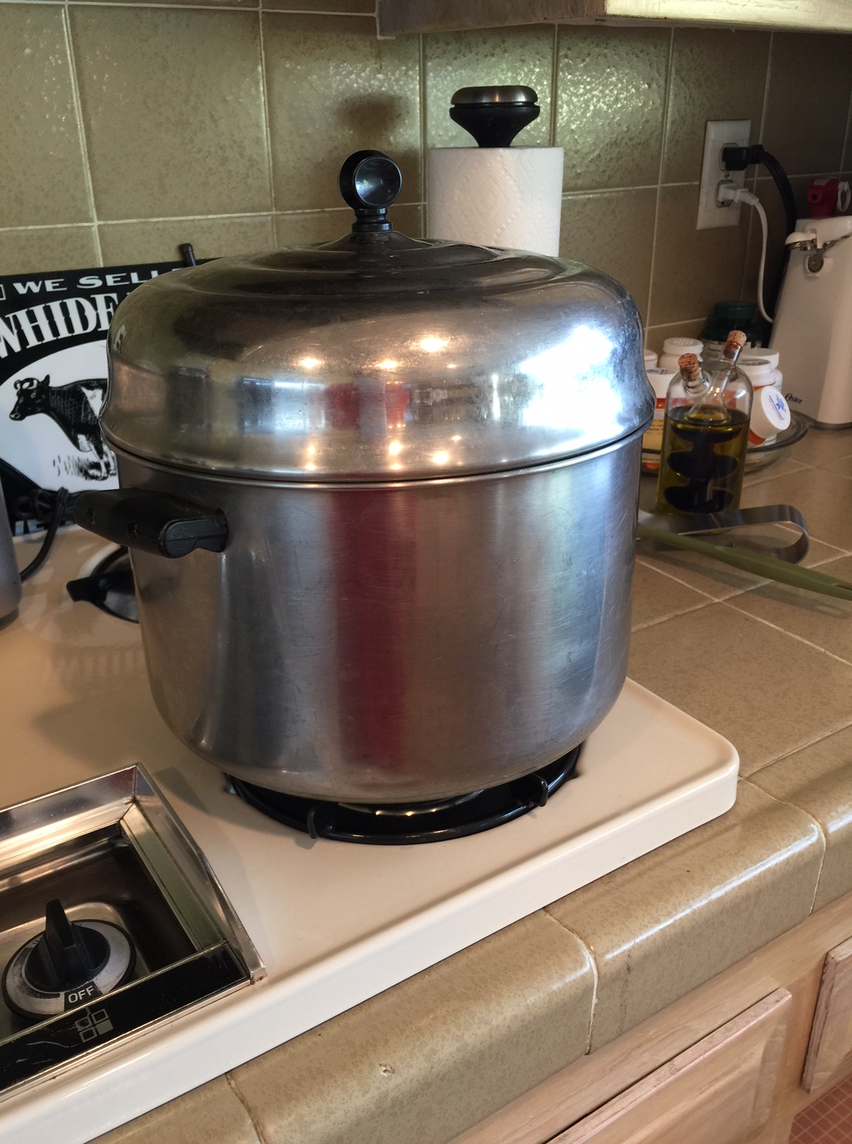 The cooking of the pasta is another story. My new wedding gift, a Farberware soup pot that I brought over for the cooking of the pasta, we probably called pasta spaghetti back then, would not boil. We turned the fire up and up until it could not be turned up anymore. We figured the saying “A watched pot does not boil.” was true, so we took a break and listened to music and talked. Still the pot would not get a boil on, just rippled a bit. We put the pasta, spaghetti in the pot and it finally made al dente status. All and all the pot never boiled.