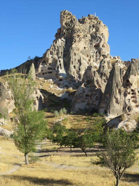 We- moved on to Uschisar where we sat near the Uchisar Fortress. We were told that this fortress was carved out of a natural hill in this area surrounding Cappadocia formations.